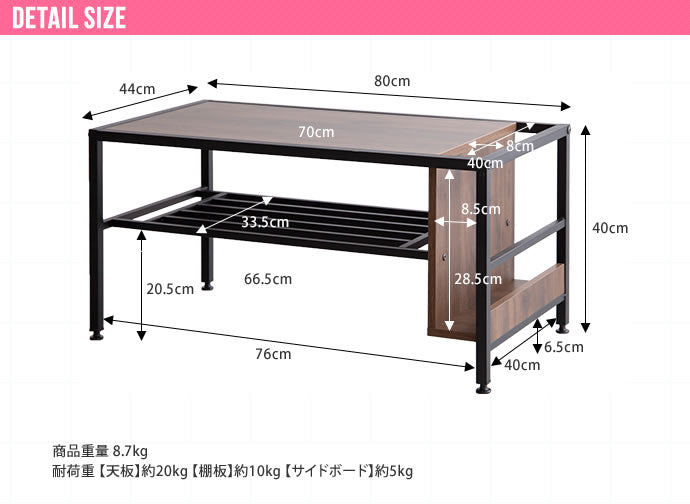 耐荷重 天板:約20kg、棚板:約10kg、サイドボード:約5kg