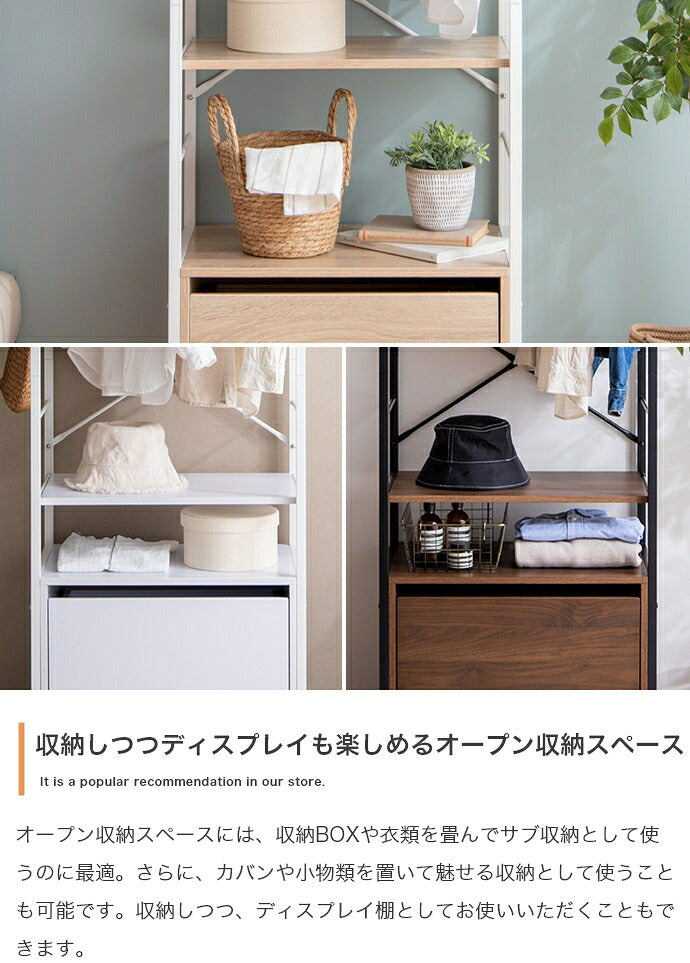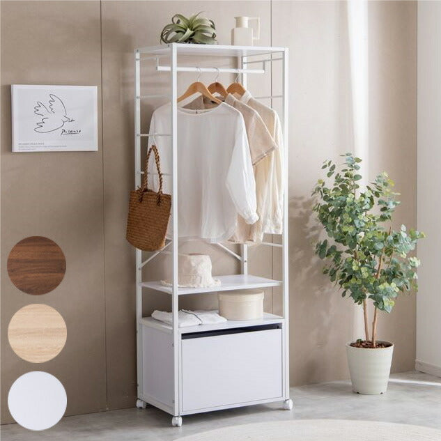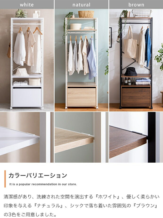 ハンガーラック 木目調 幅60cm 6段 調節可能 引出し付き キャスター付き コートハンガー 洋服収納 衣類収納 収納家具 収納 アジャスター付き 一人暮らし コンパクト 棚 おしゃれ シェルフ(代引不可)