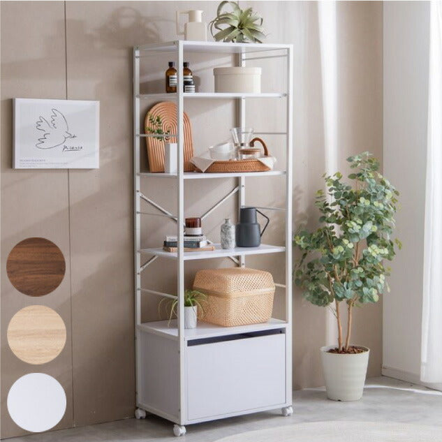 ラック オープンラック 幅60cm 引出し付き キャスター付き 収納 洋服収納 収納付き アジャスター付き 一人暮らし コンパクト 棚 スリム 木目調 白 おしゃれ 6段 6段階 調節可能 本棚 シェルフ(代引不可)