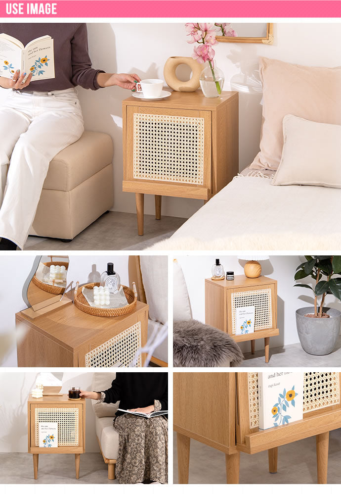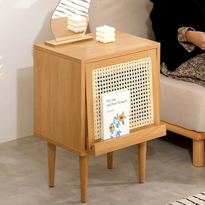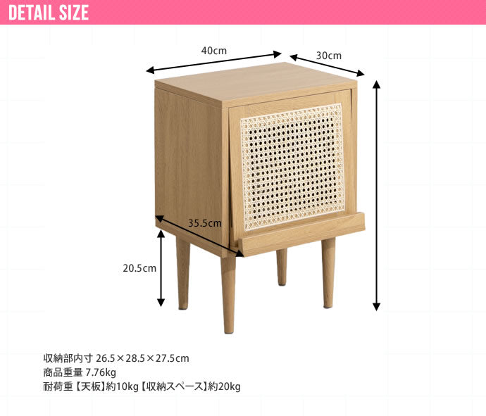 ラタンサイドキャビネット 幅40cm 天然籐×木目調 かごめ編み ラタン サイドテーブル ナイトテーブル 木製 ナチュラル 韓国インテリア かわいい 可愛い おしゃれ 籐家具 ラタン家具(代引不可)