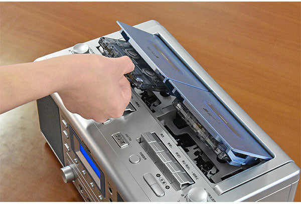 カセットテープはダブルデッキを採用。テープからテープへの高速ダビングにも対応しています。