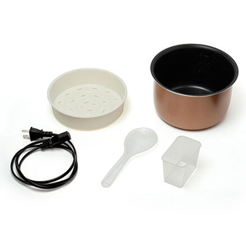 付属品:蒸し皿・計量カップ・しゃもじ・電源コード・取扱説明書兼保証書
