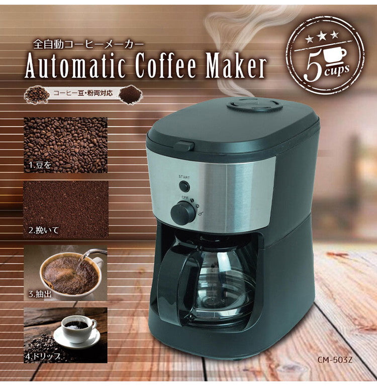 全自動コーヒーメーカー CM-503Z コクと香りが楽しめる 粗挽き 中挽き 粉 3種のモード メッシュフィルター 丸洗い可能 コーヒーメーカー 全自動 コーヒー