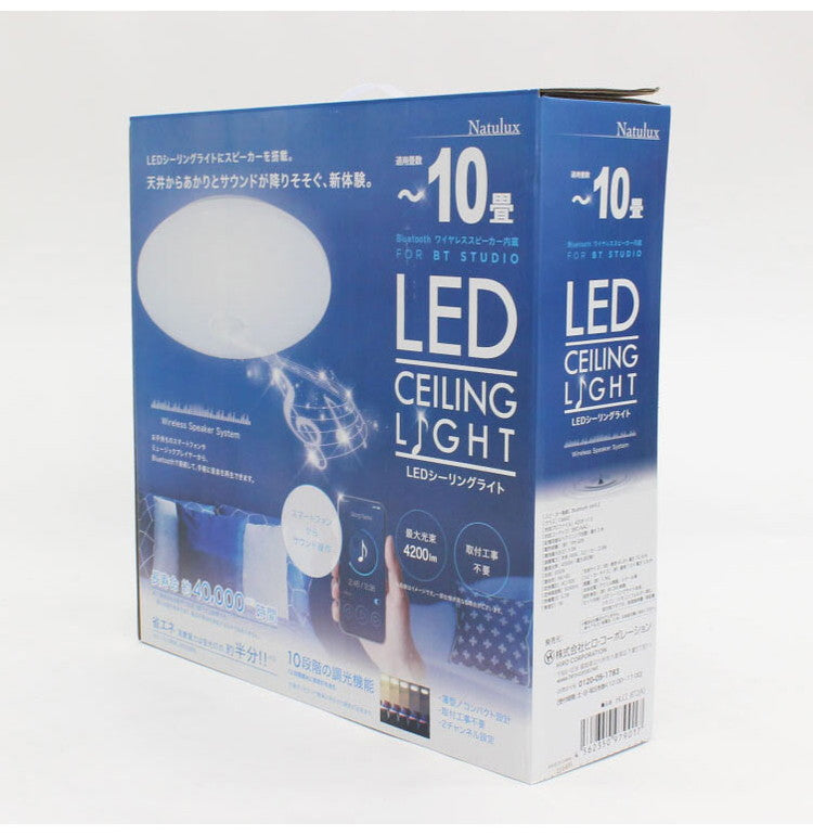 ワイヤレススピーカー内蔵 LEDシーリングライト 10畳用 Bluetooth内蔵 スマートフォンから簡単再生 10段階調光機能 リモコン付属 HLCL-BT02K LED ワイヤレス