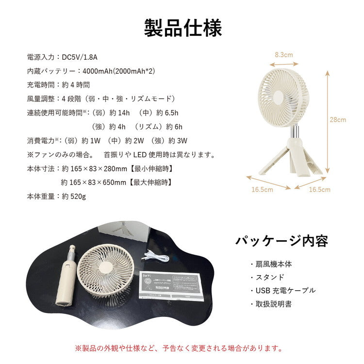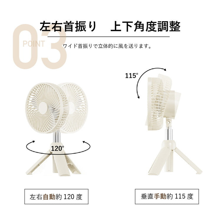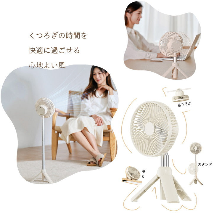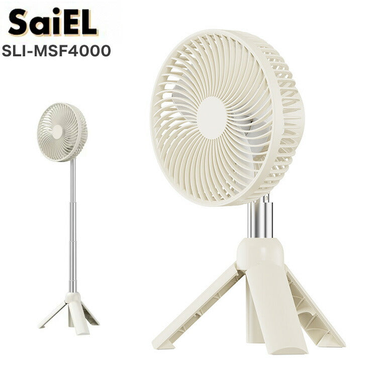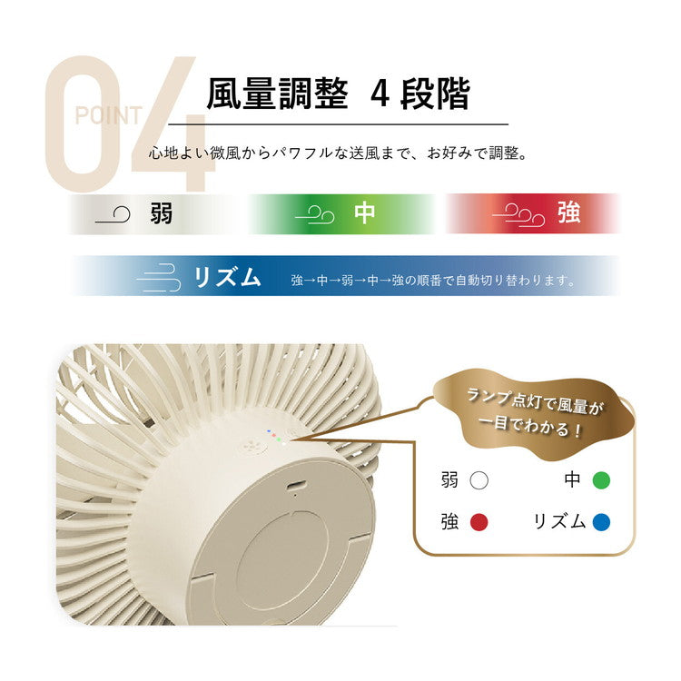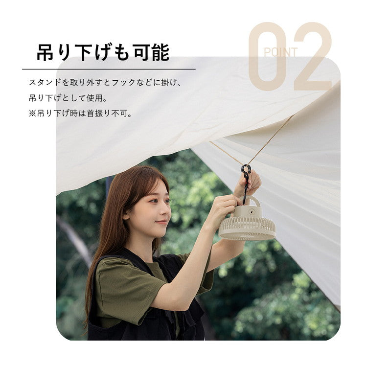 マルチスイングファン SLI-MSF4000 4段階風量調節 コンパクト 小型 USB コードレス キャンプ 大容量バッテリー搭載 卓上 吊り下げ スタンド 壁掛け 左右首振り 上下角度調整 充電式扇風機 静音