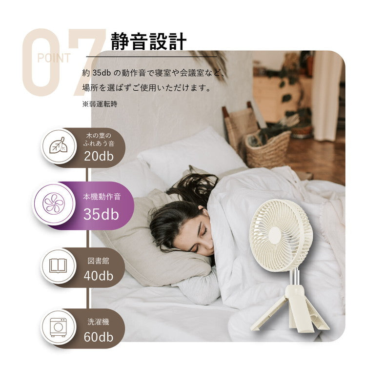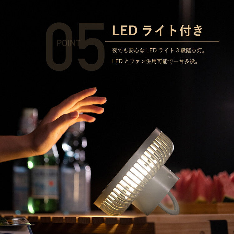 夜でも安心なLEDライト3段階点灯。LEDとファン併用可能で一台多役。