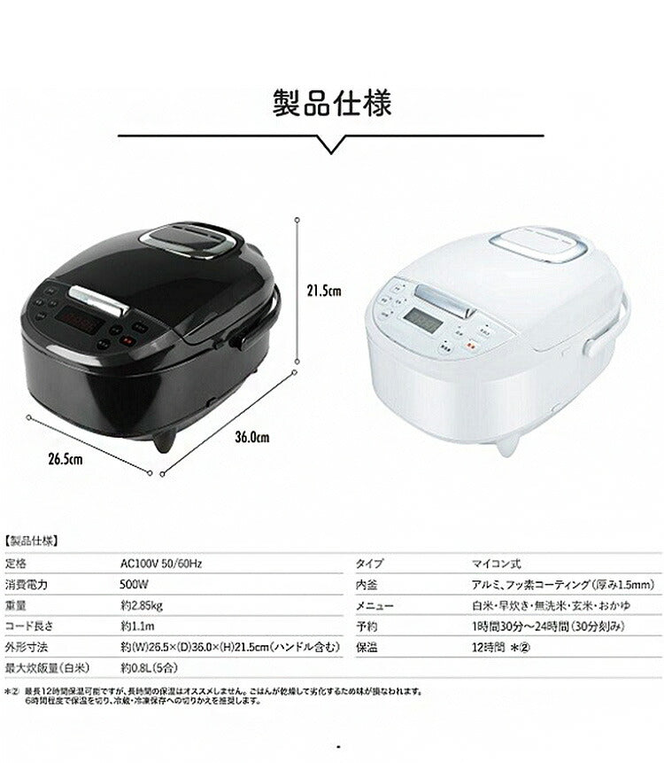 内釜:アルミ、フッ素コーティング(厚み1.5m)