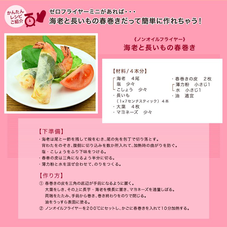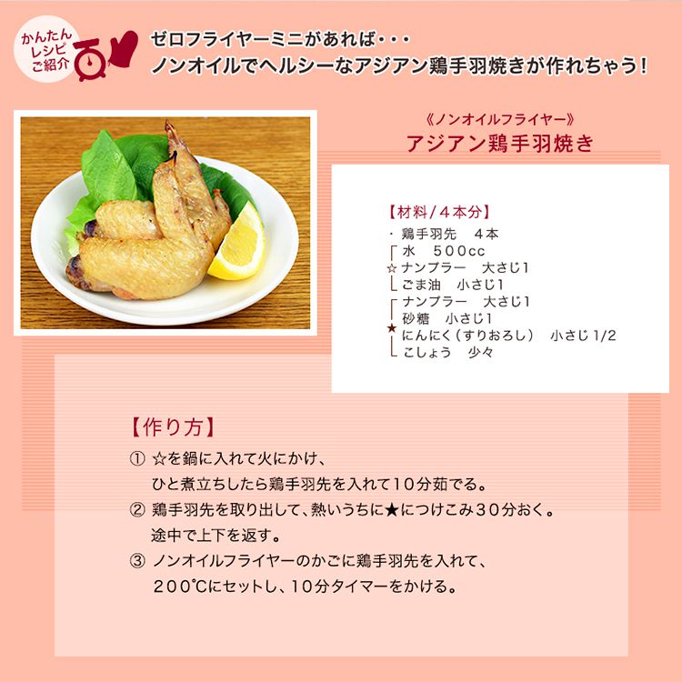 揚げることができます。 油なしで調理ができるのでヘルシー志向の方におすすめです。