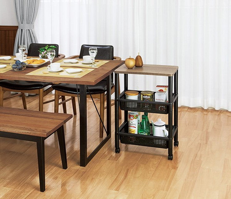 ウッドスタイルワゴン BK F49001 キャスター付き サイドテーブル 小物置き おしゃれ 工具不要 国産