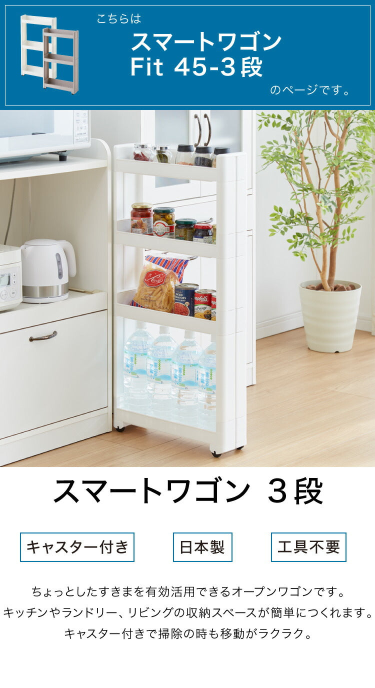 【すきま収納】 幅12.5cm スマートワゴン Fit 45 3段 かんたん組立式 コロ付き 隙間に収まる 不動技研 キャスター付き リビング 壁面収納 アイデア収納 日本製 不動技研