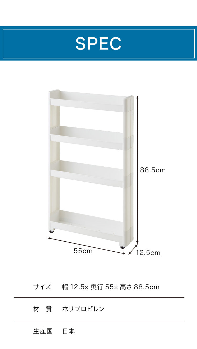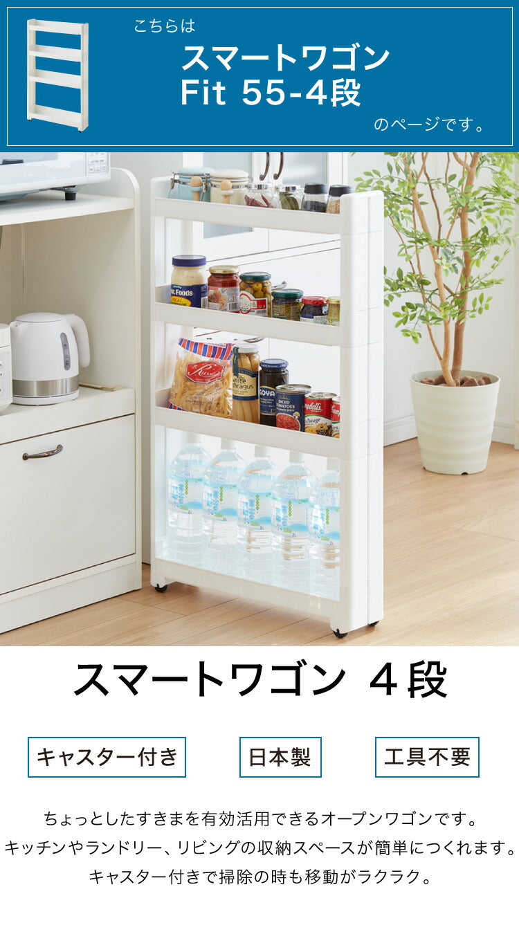スリムワゴン スマートワゴンFit 55 4段 幅12.5cm ホワイト 隙間収納 収納ワゴン 移動 隙間収納 洗面所 洗面台 洗濯機 スリム収納 スリム スリムラック すき間 隙間 すきま ランドリー