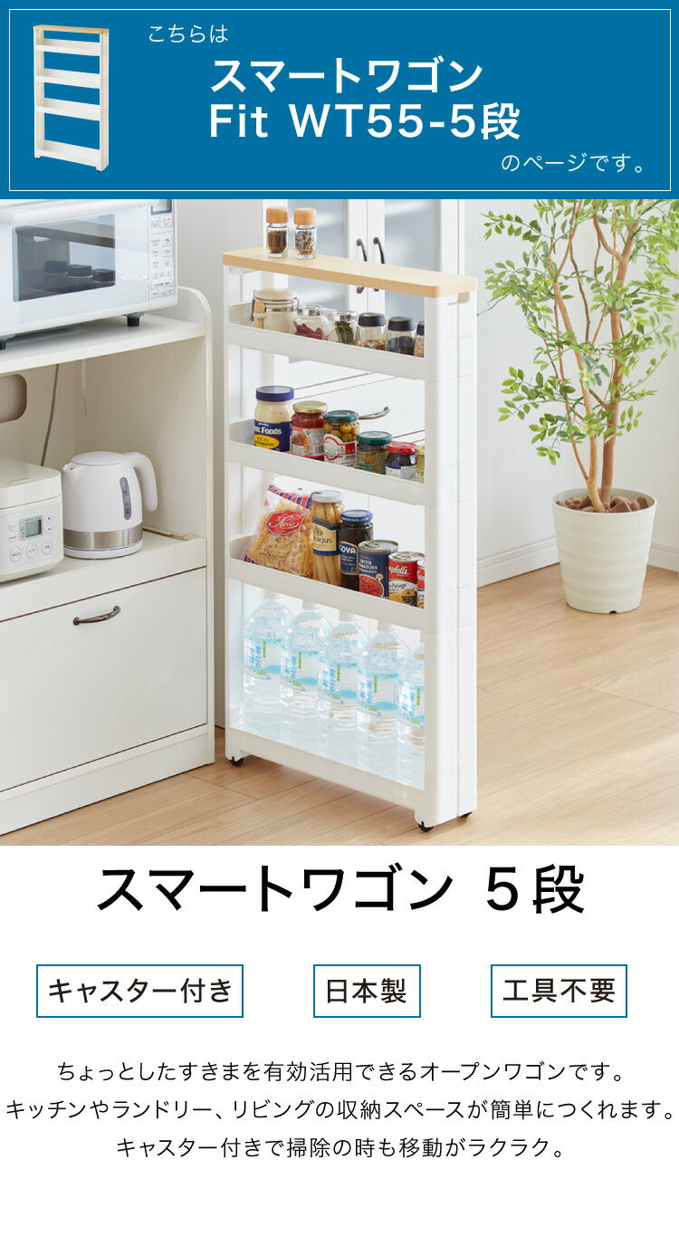 【すきま収納】 幅12.5cm スマートワゴン サニタリー 5段 Fit WT55 F2543 木天板 かんたん組立式 コロ付き 隙間に収まる 不動技研 キャスター付き リビング 壁面収納 ランドリー アイデア収納 日本製