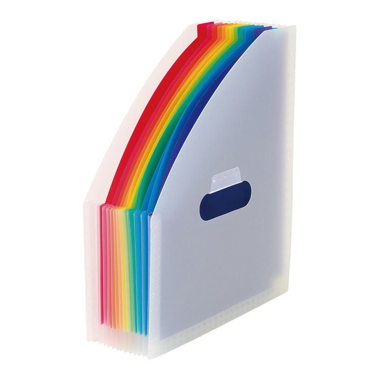 ●12色の色別仕切りで検索性を高めた、レインボーカラーの収納スタンド。
