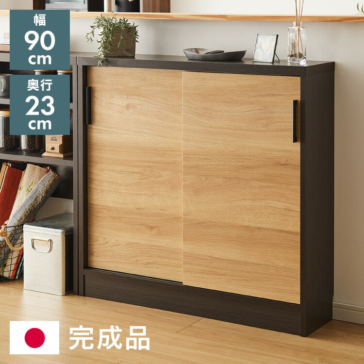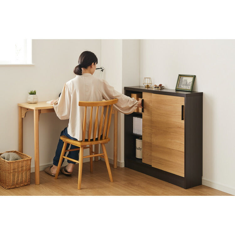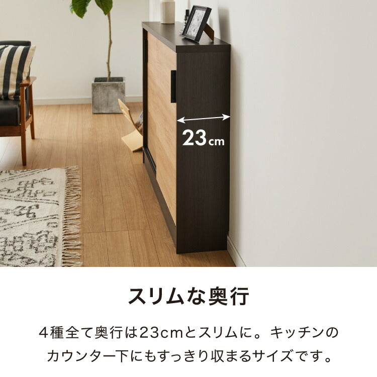 カウンター下収納 幅90cm 和モダン キャビネット 完成品 引出し ロータイプ おしゃれ キッチン収納 リビング収納 食器棚 コンパクト 省スペース キッチンカウンター 北欧 スリム 木製 木目調