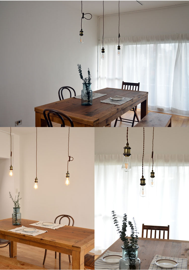 ペンダント ソケット 1灯 真鍮 ※電球別売り 1灯金具 E26 古アンティーク紐 インテリア照明 カフェ CAFE モダン レトロ 北欧