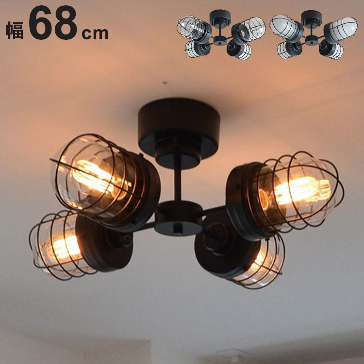 シーリングライト 4灯 天井照明 スチール ガラス おしゃれ かわいい 北欧 インテリア リビング ダイニング キッチン 節電 照明 居間 寝室 シンプル LED 電球別売り(代引不可)
