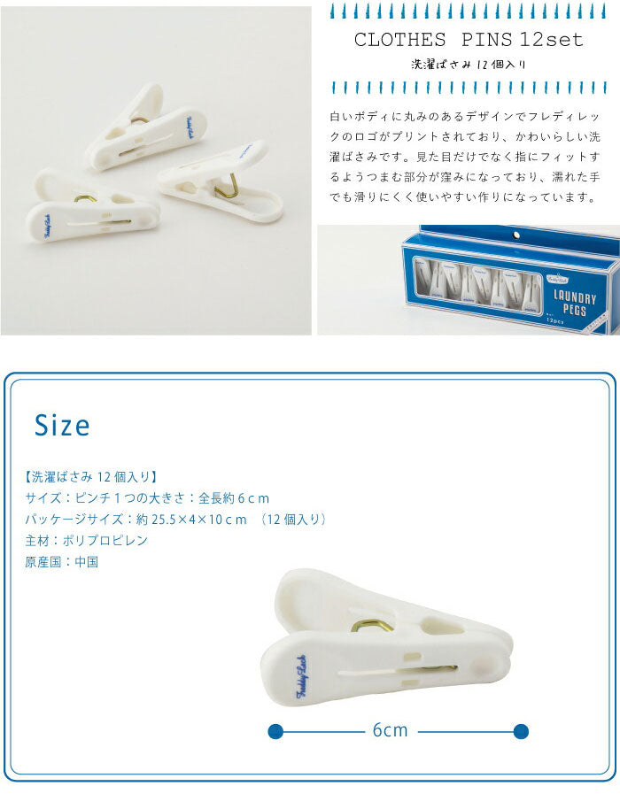 フレディレック 洗濯ばさみ ランドリーピンチ 12個セット ドイツ 白 洗濯 北欧 おしゃれ ランドリー シンプル 洗濯はさみ ピンチ 洗濯バサミ ランドリーグッズ FREDDY LECK FL-103