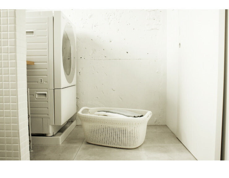 ランドリーバスケットは横長スクエアの40L。大き目の脱衣カゴは洗濯物の出し入れも楽です。たっぷり入れても、両サイドのしっかりした持ち手付きで安心。