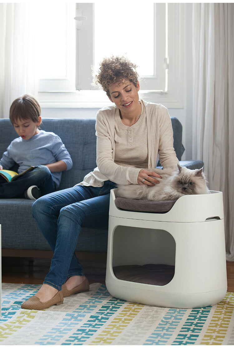 上段は取り外し可能なベッドがついています。2段ベッドとして、ペットの気分でおうちのなかと外とで使えます。