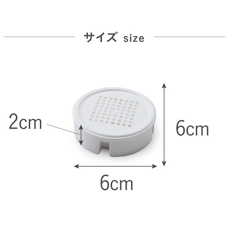 ろ材の種類:亜硫酸カルシウム、除去対象物:遊離残留塩素、ろ過流量:8L/min、総ろ過流量:2,000L、使用水圧:0.07~0.4Mpa、交換期間の目安:約1か月(1個あたり)
