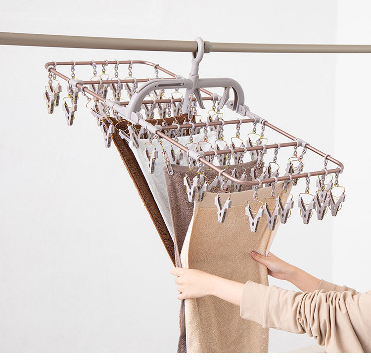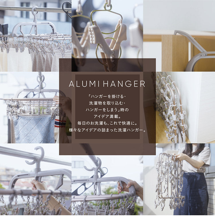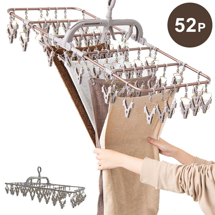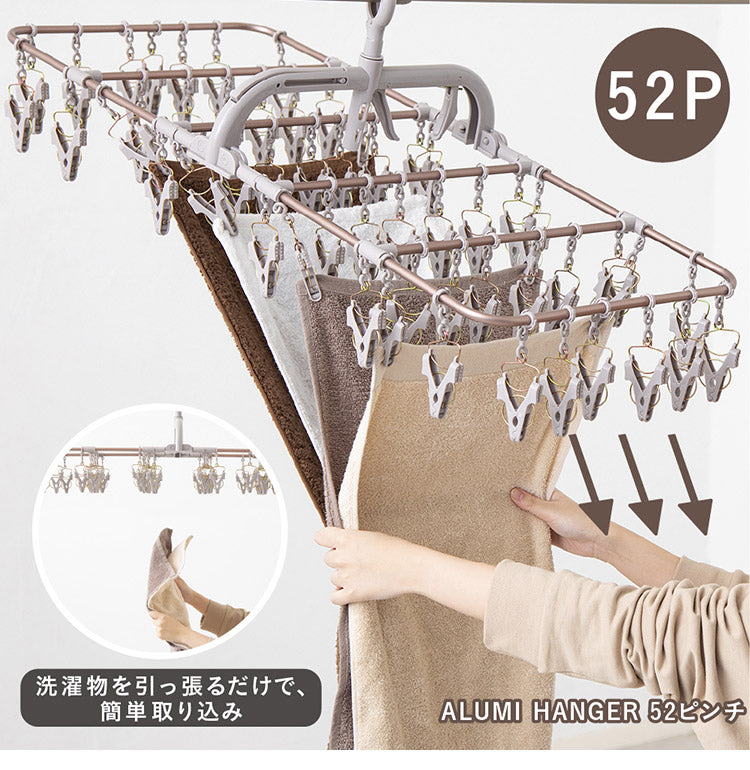 アルミハンガー 52P 引っ張るだけ 簡単取り込み 洗濯物干し 折りたたみ 折り畳み ピンチハンガー 洗濯ばさみ インテリア おしゃれ シンプル タオル バスタオル 部屋干し 屋内 軽量 コンパクト 丈夫