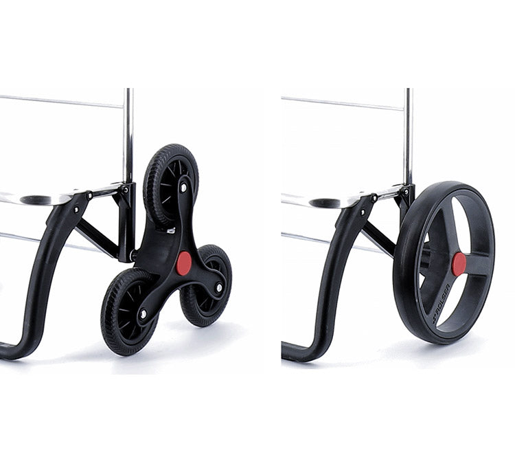 マウンテンタイヤは6輪になっており、1つのタイヤが軸となりタイヤ全体が回転することで、階段や段差でも楽に押していただける構造になっています。