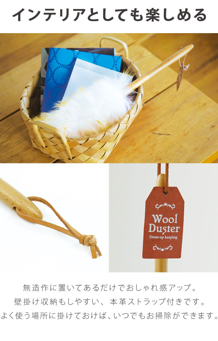 ウールダスター 羊毛はたき LLサイズ 天然羊毛 天然木 ウール 100% ほこり取り ほこり払い ハンディモップ ハンディワイパー 柄付き 本革 ひも付き おしゃれ ナチュラル かわいい 北欧 ホコリ 埃