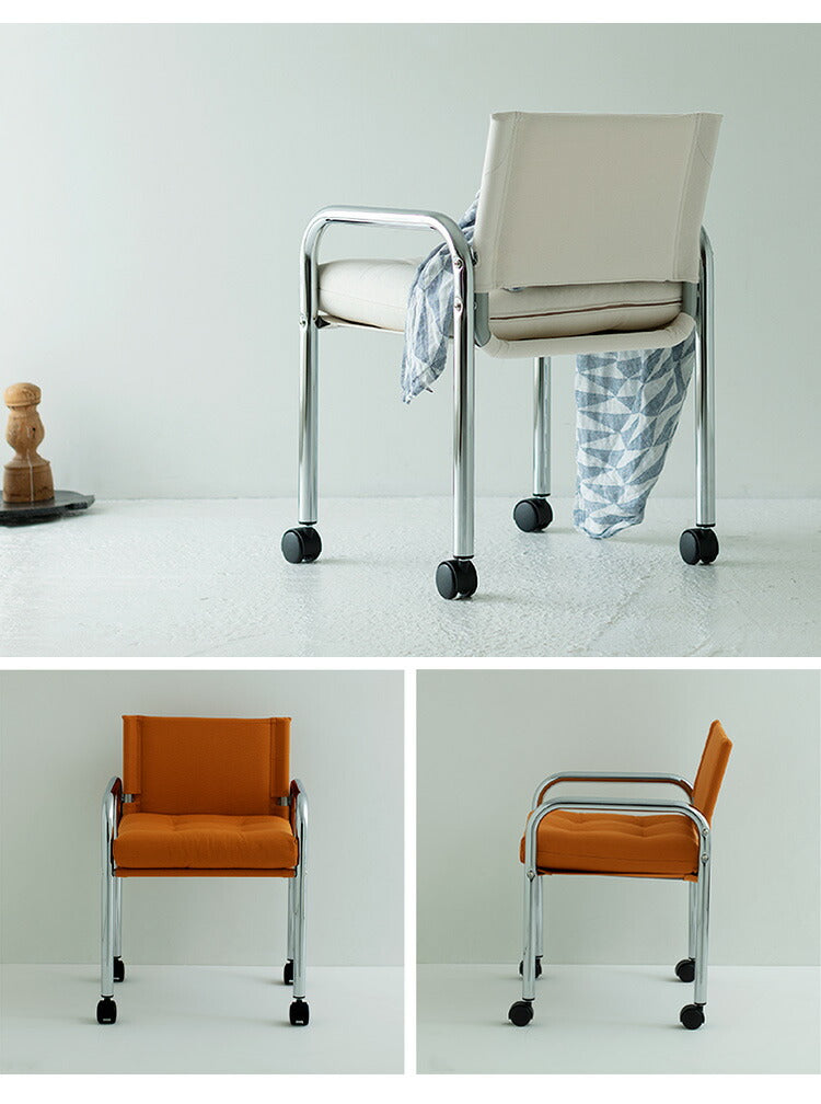 ダイニングチェアとしてはもちろん、長時間座り続けても疲れにくい厚手のクッションと機能的な4輪キャスター付きなので、オフィスチェアとしても活用できます。