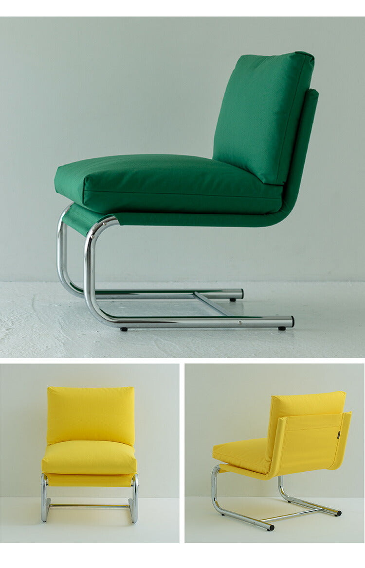 ゆったりとした大きなクッションとカンチレバー構造のスチールフレームで、