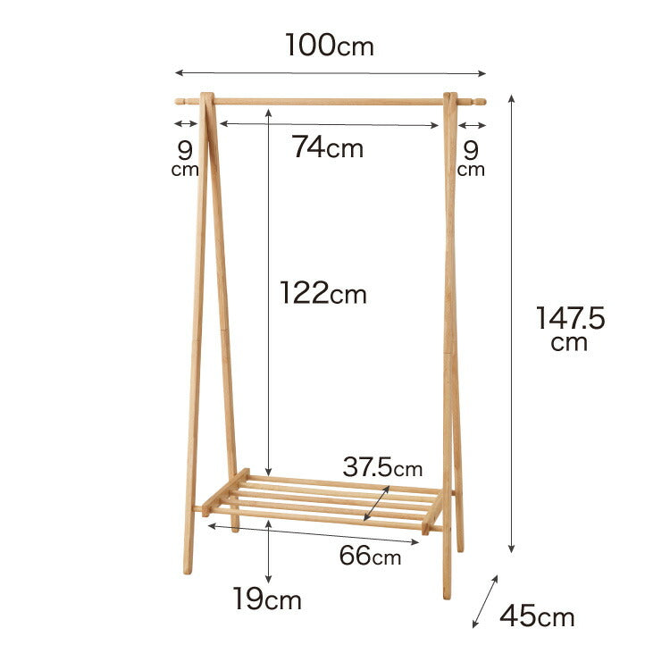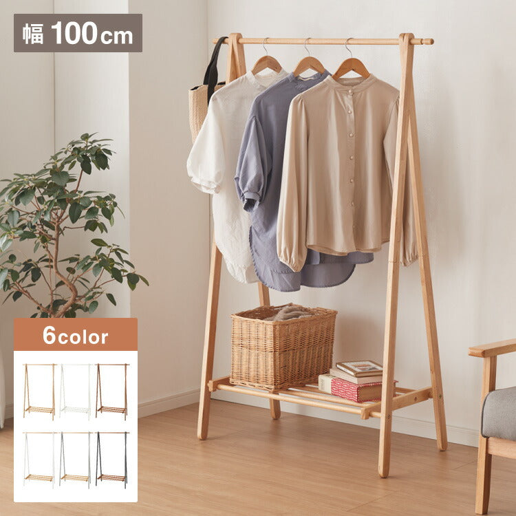 天然木 ハンガーラック 幅100cm 棚付き A型ハンガーラック 折りたたみ 省スペース コンパクト スリム ナチュラル ハンガーラック 木製 ポールハンガー コートハンガー 洋服掛け 衣類収納 木製