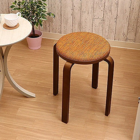 スツール 木製 ファブリック曲木スタッキングスツール イエロー W320×D320×H470mm ポリエステル プラスティク 合板曲木 おしゃれ 北欧 椅子 イス チェア いす (代引不可)