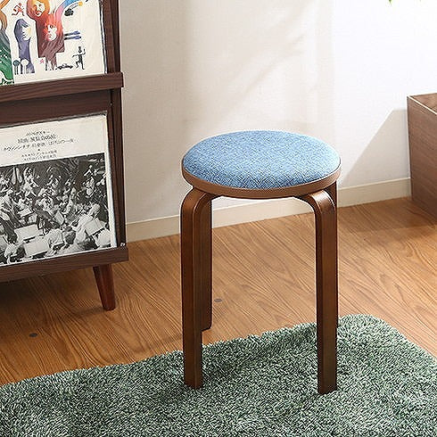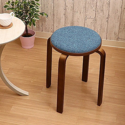 スツール 木製 ファブリック曲木スタッキングスツール ブルー W320×D320×H470mm ポリエステル プラスティク 合板曲木 おしゃれ 北欧 椅子 イス チェア いす (代引不可)