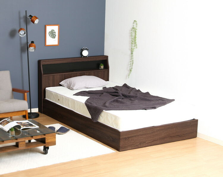 ベッドフレーム 木製 セミダブル LEDライト付き コンセント付き 収納付き 引き出し付き ロータイプ モダン ヴィンテージ風 おしゃれ ベッド シンプル ローベッド ベッド 木製ベッド(代引不可)