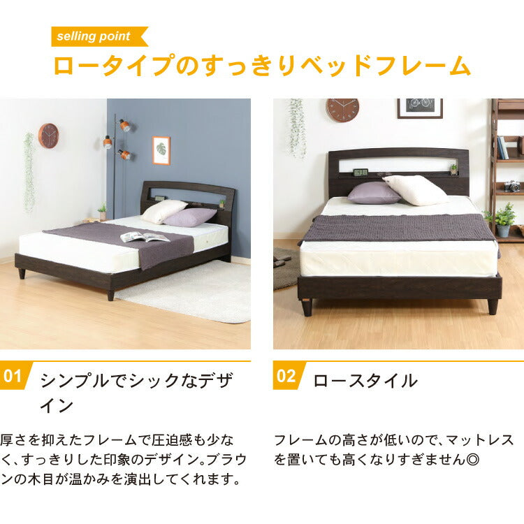 ベッドフレーム 木製 セミダブル USBポート付き コンセント付き すのこ仕様 シンプル すのこベッド 脚付き 北欧 ヴィンテージ風 ロータイプ ローベッド ベッド(代引不可)