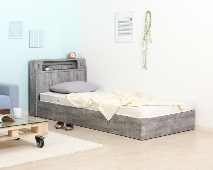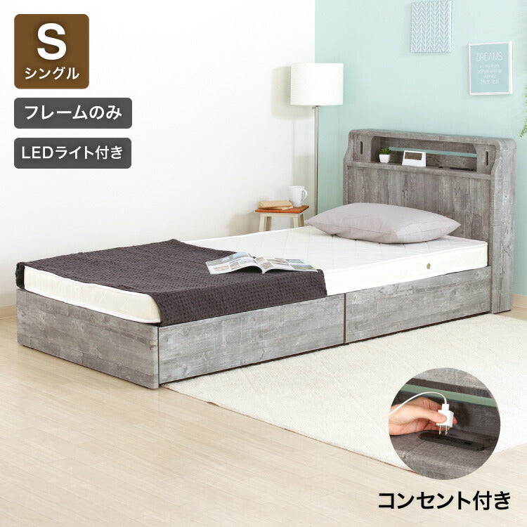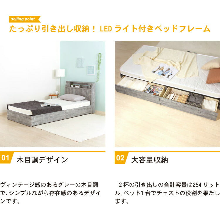 ベッドフレーム 木製 シングル 引き出し付き LEDライト付き コンセント付き USBポート付き チェストベッド 収納ベッド ヴィンテージ風 北欧 おしゃれ ローベッド ロータイ 収納棚(代引不可)