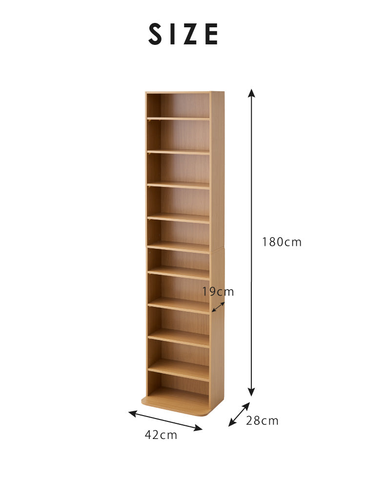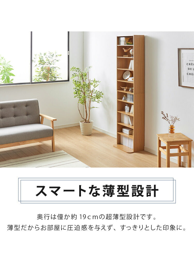 本棚 大容量 幅42 奥行19 高さ180 スリムタイプ 薄型 文庫本 書棚 DVD CD 漫画 マンガ 収納 ラック 地震対策 転倒防止 隙間収納 ブックシェルフ コミック収納