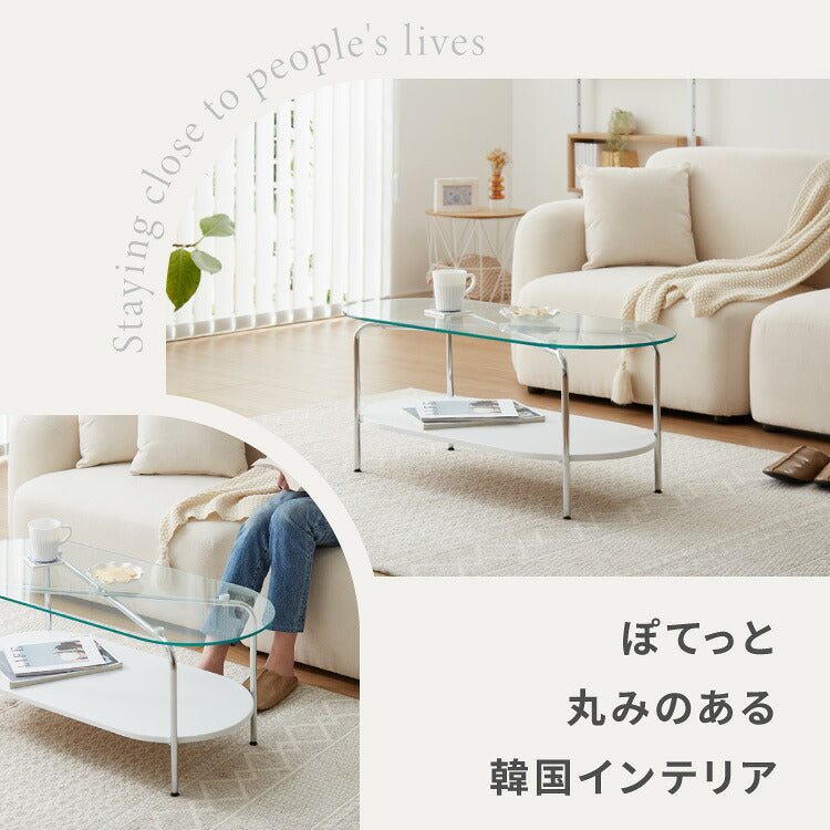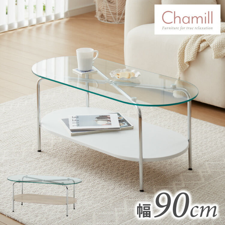 ガラスセンターテーブル 幅90cm ローテーブル 韓国風 韓国インテリア ホワイト 木目 一人暮らし ワンルーム おしゃれ かわいい Chamill