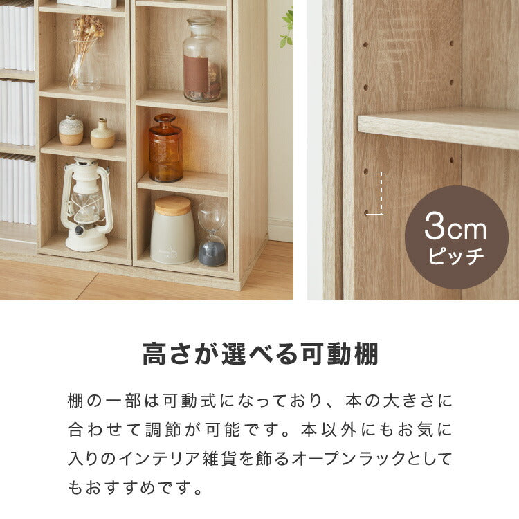 棚それぞれ可動棚板があり、上下に微調整して本の高さに合わせることができます。