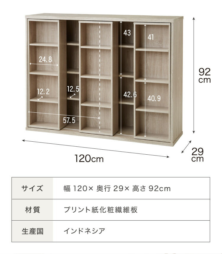本棚 書棚 スライド式 トリプル 幅120 4段 木製 コミックラック 漫画 書籍 収納 大容量 ブックシェルフ 木目 おしゃれ ブックラック 書斎棚 トリプルスライド 可動棚 北欧 新生活