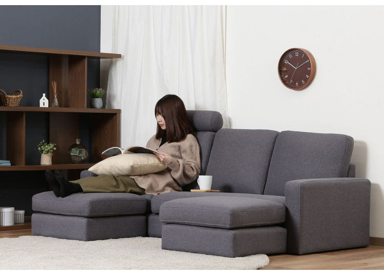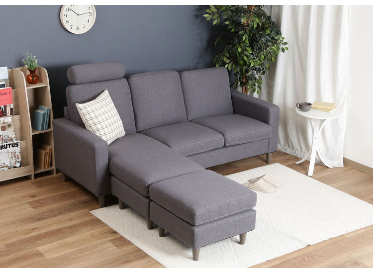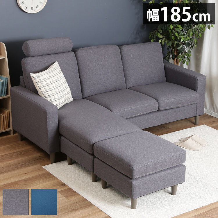 ソファ カウチソファ 3人掛け 幅185 ヘッドレスト付き オットマン スツール おしゃれ 北欧 ファブリック カフェ ソファー sofa 三人掛け 3P ローソファ フロアソファ かわいい(代引不可)