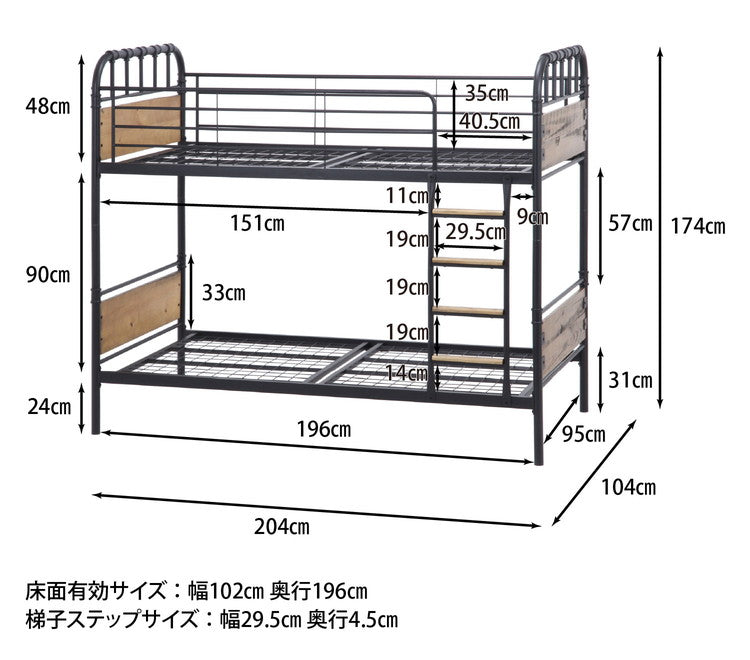 2段ベッド ベッドフレーム スチール 木製 おしゃれ 木製 北欧 ベッド かわいい パイプベッド 西海岸 子供用 大人用 キッズ 子供部屋(代引不可)