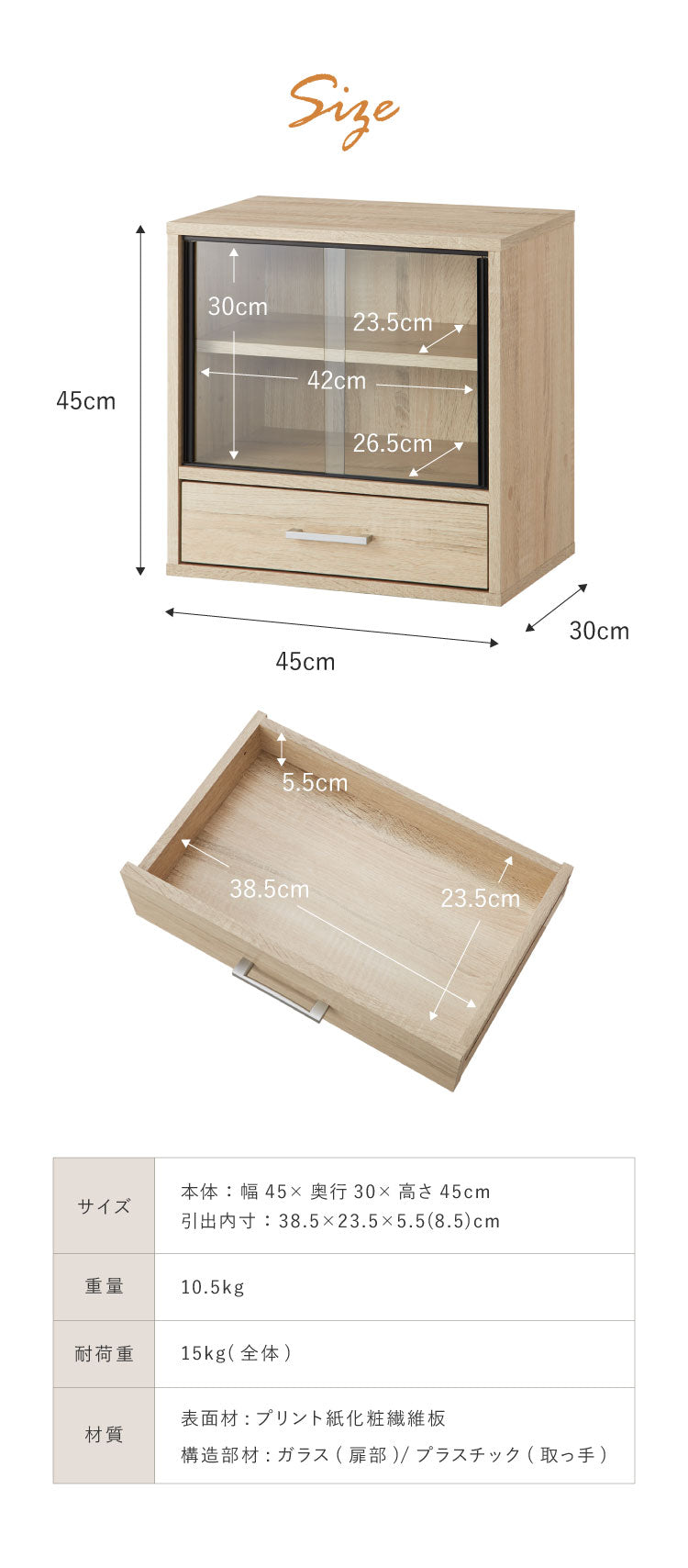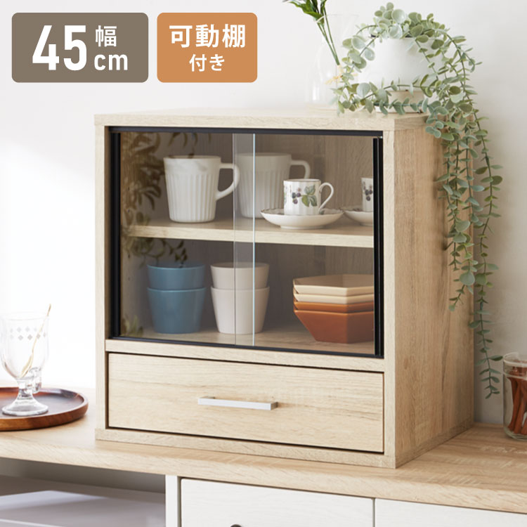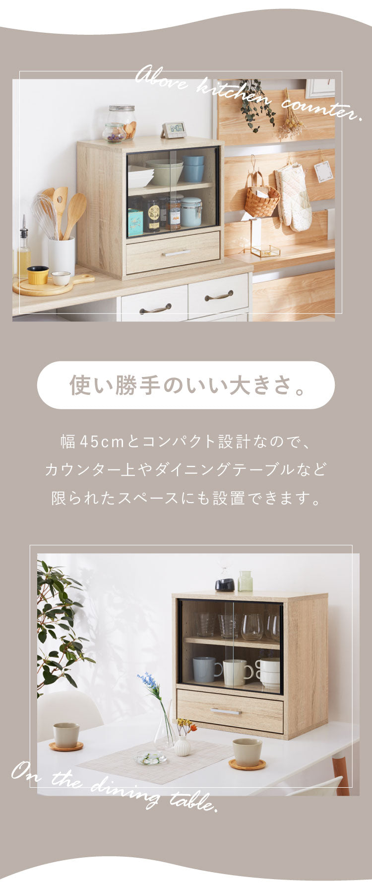 ミニ食器棚 幅45cm 卓上 カウンター上収納 コンパクト キッチンキャビネット ロータイプ ミニタイプ ガラス扉 引き出し収納 スリム カップボード キッチンラック チェスト 扉収納 上置き食器棚 引き戸(代引不可)