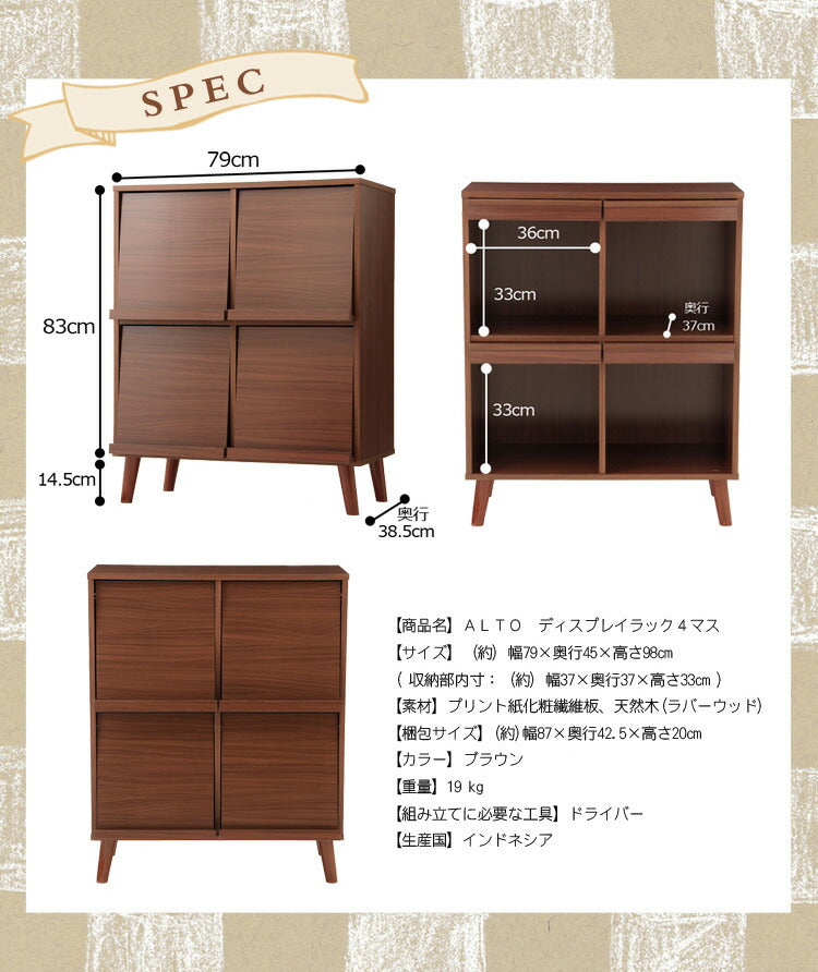 アルトシリーズ ディスプレイラック 4マス 北欧 モダン インテリア おしゃれ(代引不可)