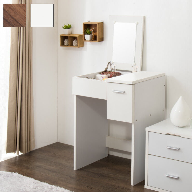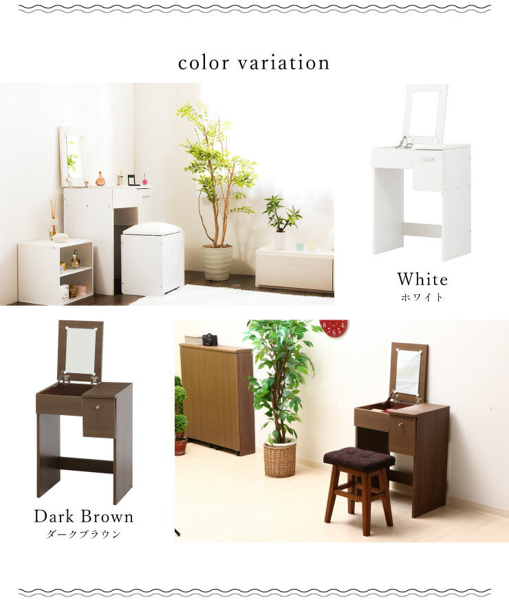 ドレッサー デスク 幅50cm 奥行39.5cm 高さ68.5cm 鏡 ミラー 引き出し ホワイト ダークブラウン 組み立て式 シンプル ドレッサーテーブル コスメ収納 メイク収納 化粧台 鏡台