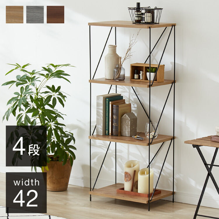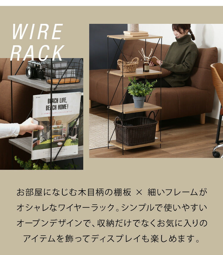 ワイヤーラック 4段 幅42cm 木目調 スチール 組み立て簡単 工具不要 おしゃれ 北欧 収納 スチールラック ワイヤーラック スチールシェルフ 子供部屋 洗面所 ディスプレイラック 隙間収納 すきま収納(代引不可)