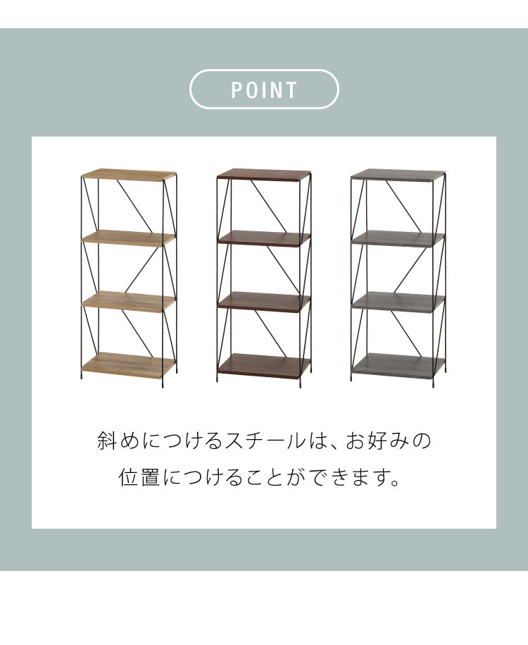 また、斜めにつけるスチールはお好みの位置に付けることができます。