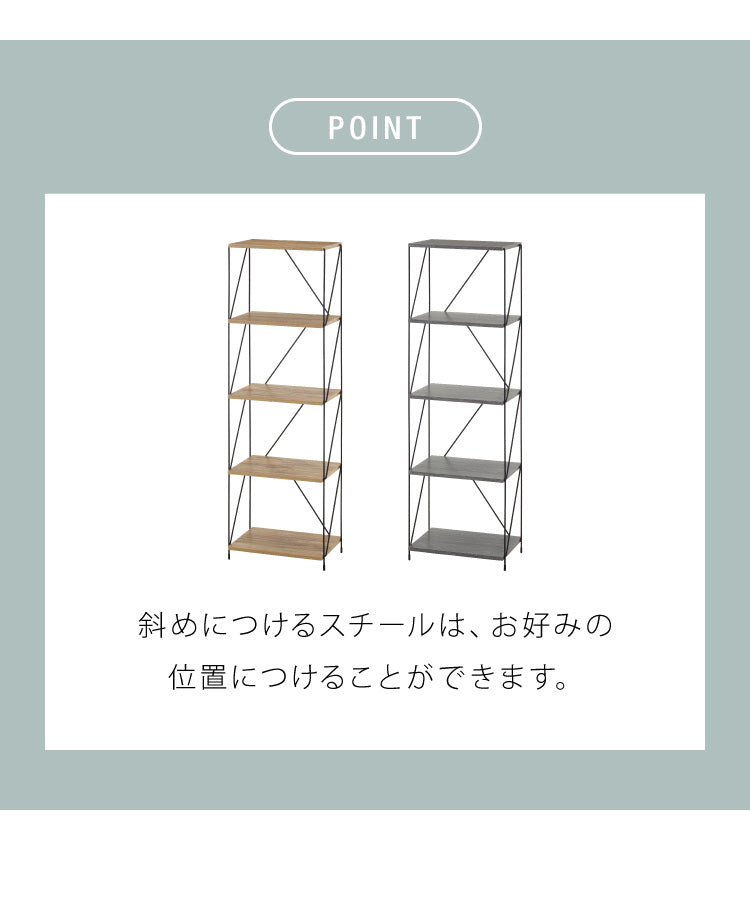 また、斜めにつけるスチールはお好みの位置に付けることができます。