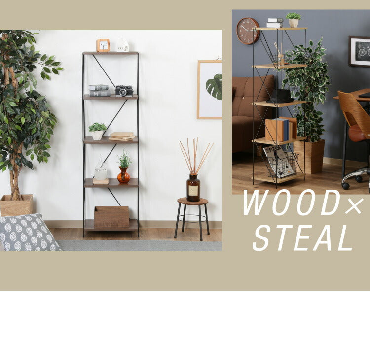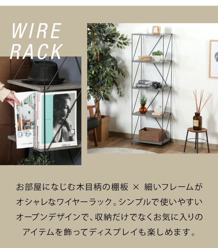 ワイヤーラック 5段 幅42cm 木目調 スチール 組み立て簡単 工具不要 おしゃれ 北欧 収納 スチールラック ワイヤーラック スチールシェルフ 子供部屋 洗面所 ディスプレイラック 隙間収納 すきま収納(代引不可)