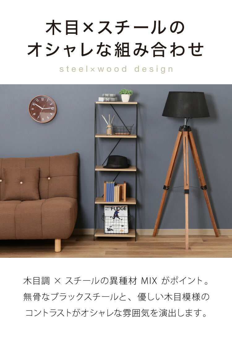 木目調の棚板とブラックスチールのワイヤーフレームで、空間をカッコよく見せてくれます。