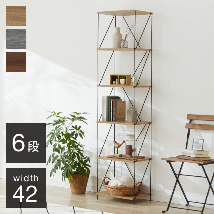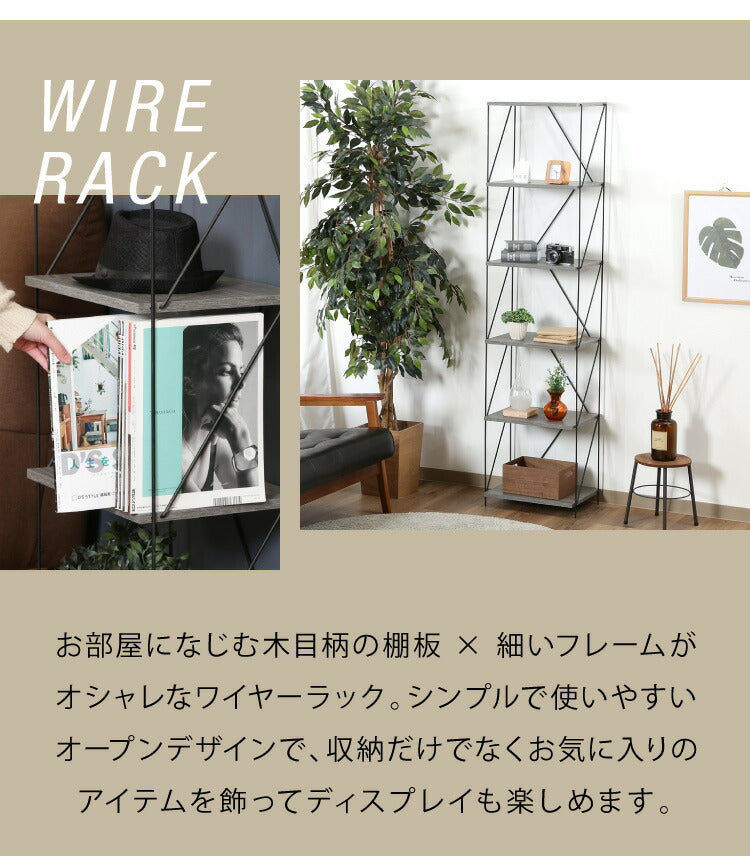 ワイヤーラック 6段 幅42cm 木目調 スチール 組み立て簡単 工具不要 おしゃれ 北欧 収納 スチールラック ワイヤーラック スチールシェルフ 子供部屋 洗面所 ディスプレイラック 隙間収納 すきま収納(代引不可)